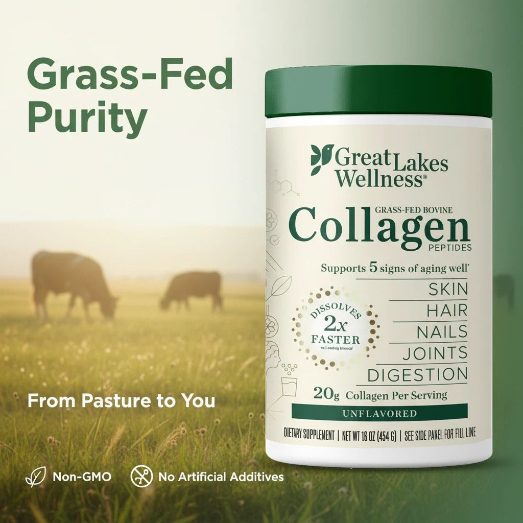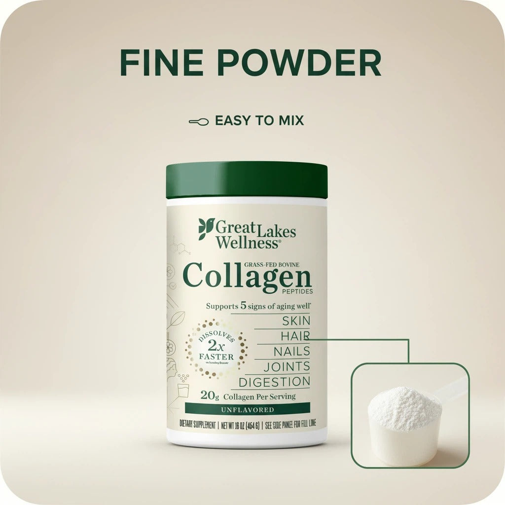 This unflavored, quick-dissolving powder blends effortlessly into your favorite beverages— coffee, smoothies, or soups — without altering taste or texture. Great Lakes Wellness' 16oz Collagen Peptides dissolve 2x faster than leading brands†, ensuring a clump-free experience, making your collagen intake seamless and enjoyable.